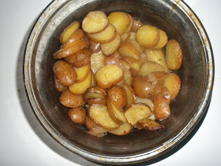 Washed sliced and layered in a dish with loads of butter ,onions, mrs dash and garlic.